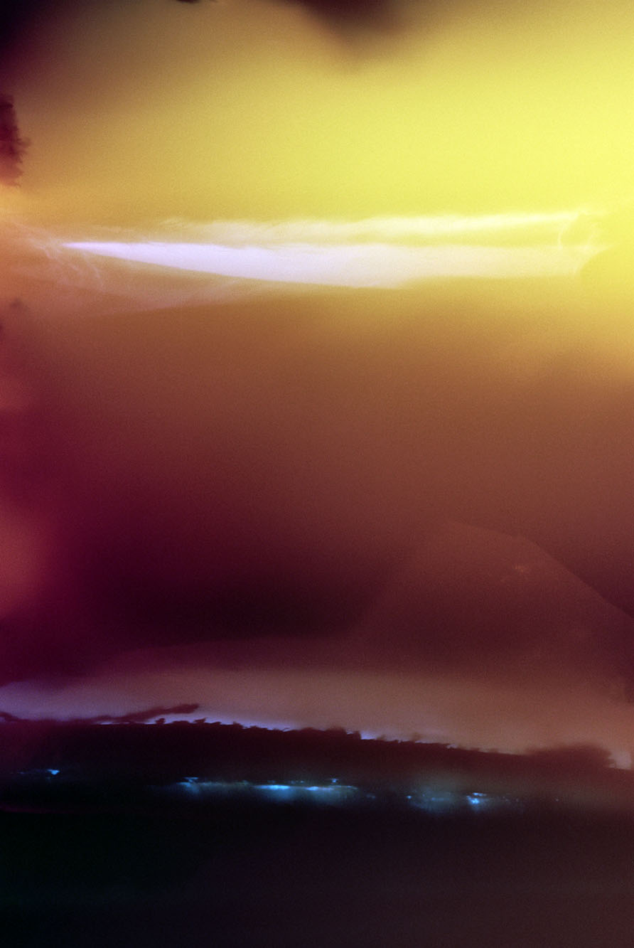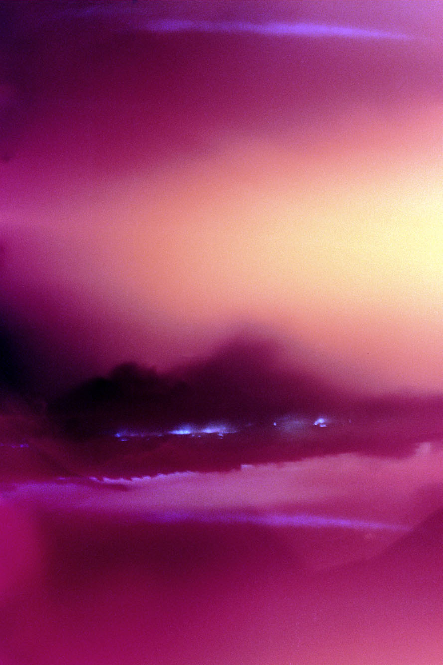 “I often think about embodiment, sight, perception, reality, and first-person experiences. As humans, we are so alone in our bodies and minds yet also so connected to one another.” In our lonely connected world, Caity Fares thinks it’s increasingly difficult for people to see each others’ points of view. Her solution: “I built an analog camera out of a discarded mannequin head.” It’s a metaphorical stand-in for a human. Her camera “sees” the earth in a different way than we do. Light waves impress colorful blemishes onto the film, a newly realized terrain. “The photographs showcase recognizable markers in harsh horizon lines and ethereal fog banks but never fully reveal a fixed locality.” With their vivid colors and sumptuous shapes, Fares’ inviting landscapes suggest that if you need a new world, just invent one.