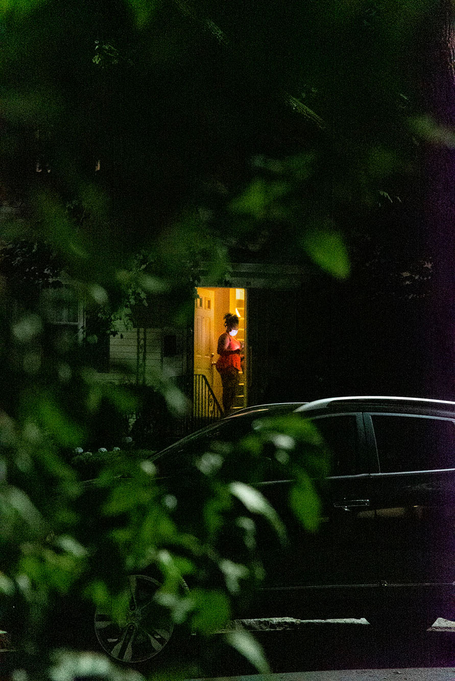 Karl Baden has an unusual reason to make night pictures—he has a condition known as “delayed sleep phase syndrome.” His body clock—which controls the daily sleep/wake cycle—is set opposite of most humans. Under normal circumstances and with some effort, Baden can wrench himself into a daytime schedule. “But in the months since the pandemic forced most of us to retreat inside our homes, I have essentially reverted to my naturally nocturnal self, staying up most of the night, and sleeping most of the day.” During the pandemic, therefore, he has walked at night, carrying a low-light camera while he does. He watches for “signs of life in a community of social creatures who’ve been forced to avoid others.” The images are both eerie and commonplace. They are not posed but caught in the moment. They are not prurient but somehow deeply intimate.